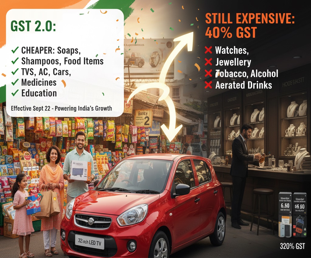 The GST rationalisation is expected to increase consumer purchasing power, simplify compliance for businesses, and support India’s economic growth. With the festive season approaching, households across the country are likely to benefit from lower prices on essential items, electronics, automobiles, healthcare, and educational supplies.