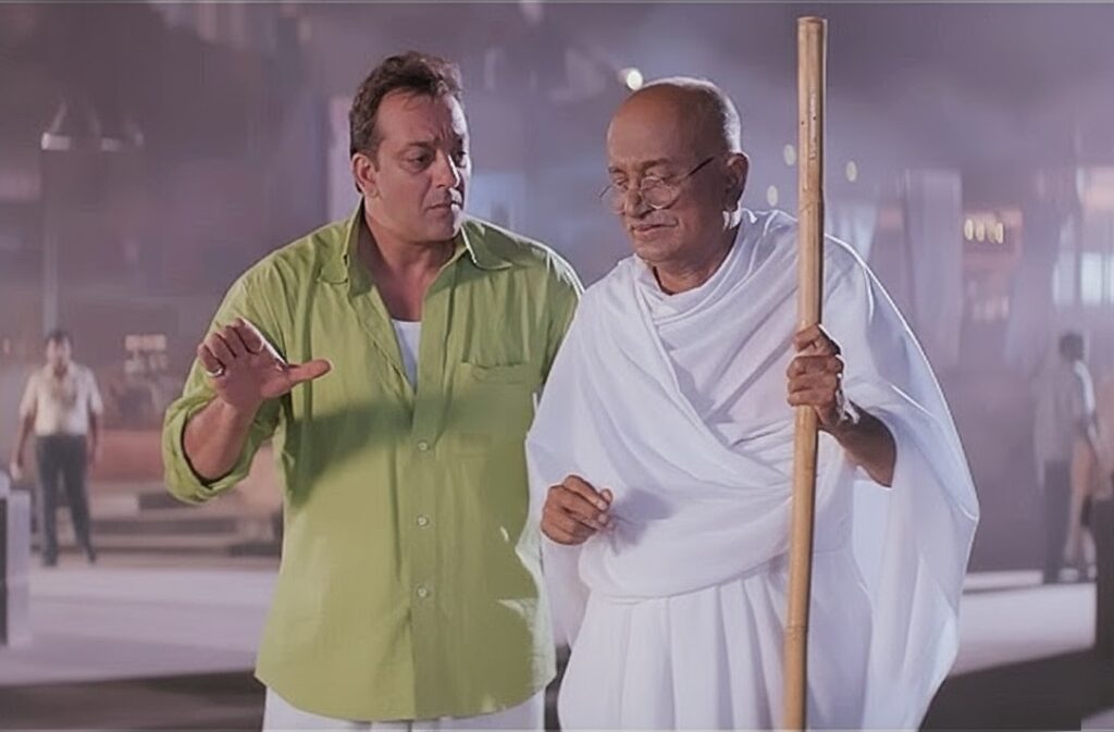 Rajkumar Hirani’s Lage Raho Munna Bhai, released on 1 September 2006, is not a biopic but a refreshing modern tribute to Gandhi’s ideals. The film stars Sanjay Dutt as Munna Bhai, Arshad Warsi as Circuit, Vidya Balan, Boman Irani, and Dilip Prabhavalkar as Mahatma Gandhi. The storyline follows Munna Bhai, a lovable goon, who begins to see Gandhi’s spirit and applies his principles of truth and non-violence to solve everyday problems. Blending humor with philosophy, the film introduced the concept of “Gandhigiri”, which quickly entered popular culture. It became a massive box-office hit and won several Filmfare Awards, including Best Film (Critics) and Best Screenplay.